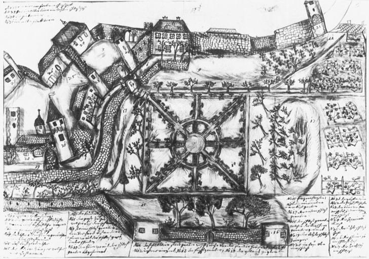 Keywords: Ladenburg-1732.png de Bischofshof und Lustgarten Ladenburg 1732 Reproduction of a painting that is in the public domain because of its age PD-old-100 City walls of Ladenburg Schloss Ladenburg