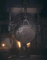 Keywords: Ladle of molten iron is poured into an open hearth furnace for conversion into steel, Allegheny Ludlum Steele Corp, Brackenridge, Pa Note the safety latch on the crane hook.jpg LargeImage en Ladle of molten iron is poured into an open hearth furnace for conversion into steel Allegheny Ludlum Steele Corp Brackenridge Pa Note the safety latch on the crane hook LOC-image fsac 1a35060 Creator Alfred T Palmer ~ 1941 PD-USGov <gallery>File Allegheny Ludlum foundry ladle jpg</gallery> Open hearth furnaces Photographs by Alfred T Palmer Steel production Ladles metallurgy Allegheny Ludlum