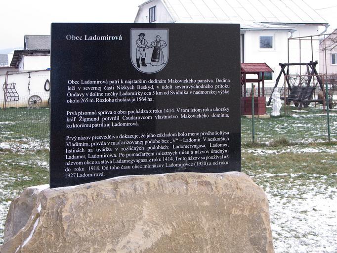 | Keywords: Ladomirova tabula1.jpg sk Tabuľa so základnými informáciami o obci own sculptor - cc-by-3 0 <br> Peter Zelizňák photo 7 januára 2016 618/2003 Z z ZÁKON zo 4 decembra 2003 o autorskom práve Slovenskej republiky § 27 Použitie diela umiestneného na verejnom priestranstve GFDL cc-by-sa-all Voľné dielo nie je chránené/voľné použitie FoP-Slovakia Plaques in Svidník District Ladomirová Images by Peter Zeliznak | ||||