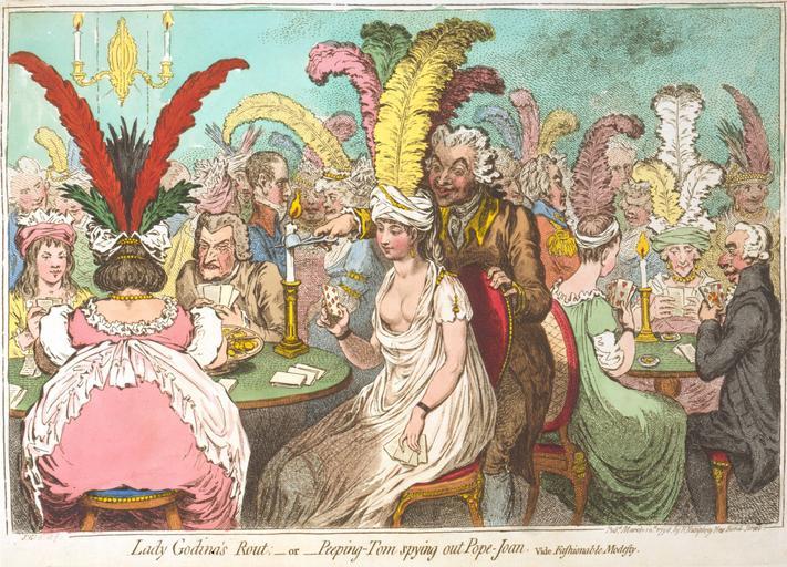 MAKE A MEME View Large Image Lady-Godinas-Route-Gillray.jpeg Lady Godina's Rout; ”or ”Peeping-Tom spying out Pope-Joan Js Gy d et f SUMMARY A fashionable crowd playing cards at two tables In the foreground four people playing the game Pope-Joan One of the women is ...