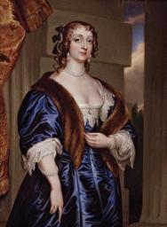 | Keywords: Lady Margaret Feilding, Duchess of Hamilton by Henry Pierce Bone after Anthony van Dyck.jpg Lady Margaret Feilding Duchess of Hamilton in blue silk décolleté dress with white lace collar and cuffs fur stole pearl bracelet two strings of pearl necklaces one with drop-pearl at corsage drop-pearl earrings further pearls worn with blue ribbon in upswept hair dressed in ringlets in left hand and draped over right arm standing in an interior with pillar curtain and sky background signed dated and fully inscribed on the counter-enamel 'Lady Mary Feilding Duchess of Hamilton London Novr 1839 Painted for J P Ord Esq by Henry Pierce Bone Enamel Painter to the Queen the Queen Dowager the Duchess of Kent From the Original by Vandyck in the Collection of the Earl of Denbigh Newnham Paddox Warwickshire ' enamel copper mm 215 170 Christie's online 5322269 creator Henry Pierce Bone after 1839-11 PD-art-100 Henry Pierce Bone Duchesses of Hamilton Fur scarves in art Female portraits by Anthony van Dyck Fur fashion in 1839 |