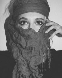 Keywords: lady woman young female girl portrait attractive model beauty girl model woman black and white long lashes makeup eyelashes eyes scarf