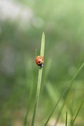 Keywords: ladybug insect the beetle grass the details of the insects nature the nature of the meadows plant meadows spring summer meadows dots color red flying green