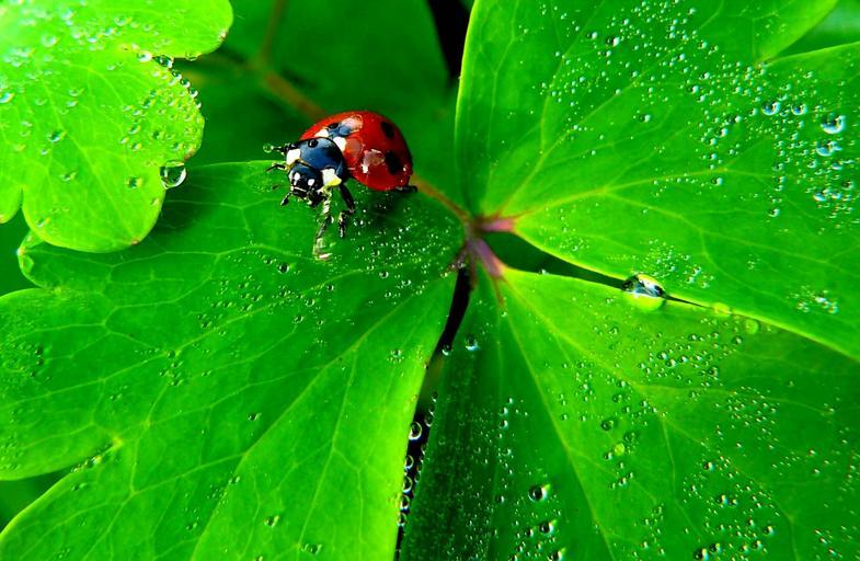 | Keywords: ladybug insect nature animals fauna macro close lucky charm luck beetle red points green color contrast insect photo spotted complementary colors grass green contrast plant plant leaf water morgentau tender filligran drop of water garden dewdrop |