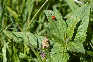 Keywords: ladybug lucky charm lucky ladybug points red black green meadow insect nature animal greeting small grass leaves
