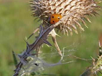 Keywords: ladybug thistle spikes macro septempunctata thistle flower summer meadow nature