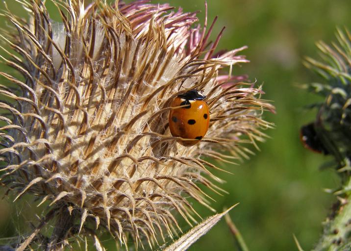 Keywords: ladybug thistle spikes macro septempunctata thistle flower summer meadow nature