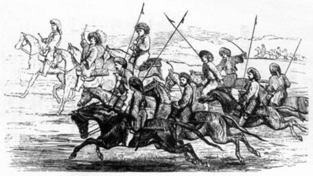 | Keywords: LadySheilFront-page.jpg en The picture is the frontpiece image in the book of Lady Sheil It depicts a group of lancers going to battle accompanied by military musicians playing sorna a reed instrument and koos small drums Glimpses of Life and Manners in Persia by Lady Mary Leonora Woulfe Sheil fl 1860 With Additional Notes by Sir Justin Sheil Knight General and Diplomat 1803-1871 London John Murray Albemarle Street 1856 As it appeared in the Website http //digital library upenn edu/women/sheil/persia/persia html XII Lady Mary Leonora Woulfe Sheil 1856 PD-old Glimpses of Life and Manners in Persia 19th-century cavalry Z |