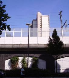 Keywords: Laermschutzwand Moschhochhaus.JPG en view of Ludwigshafen Own Immanuel Giel 2008-06 Ludwigshafen-Süd Noise barriers in Rhineland-Palatinate