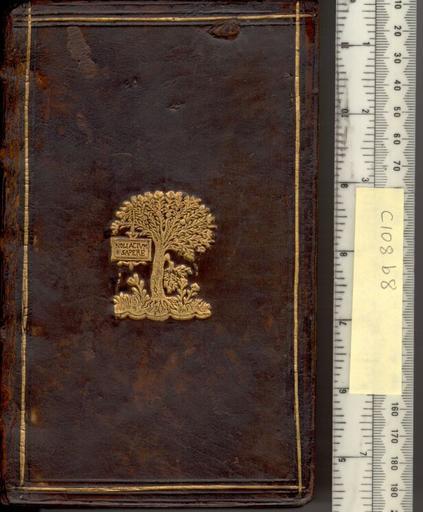 | Keywords: Laertius - Upper cover (c108b8).jpg Style Trade binding; Caption Upper cover; Colour Brown; Edge Unspecified exhibition history Decorative Technique Tooled in blind Tooled in gold; Cover Material Calf Motto reads NOLI ALIUM SAPERE object history Text 1593; Unspecified; Unspecified object type Cc-zero place of creation Binding England place of discovery A binding with this motto by Williamson of Eton is described in Frederick A Bearman Fine and historic bookbindings from the Folger Library Washington 1992 p42 British Library image http //www bl uk/catalogues/bookbindings/LargeImage aspx RecordId 020-000002802 ImageId ImageId 41006 Copyright BL Laertius Uploaded with GWToolset Laertius - Upper cover c108b8 http //www webarchive org uk/bldatasets/bindings/8540_2 jpg Bookbinding 16th-century bookbinding British Library Bookbindings |