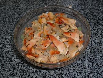 | Keywords: Laetiporus sulphureus dish 2010 G1.jpg Laetiporus sulphureus Sulphur polypore cooked 12 15 26 September 2010 UTC Laetiporus sulphureus dish 2010 G1 jpg QualityImage 49 235 28 528 Sulphur polypore Laetiporus sulphureus prepared dish This mushroom also called chicken polypore and chicken-of-the-woods At cooking yellow-colored fungi becomes pink Plat de Polypore soufré Ce champignon est surnommé poulet des bois par les anglo-saxons il est jaune mais devient rose à la cuisson Т утовик се но-жёлтый Laetiporus sulphureus готовое блюдо из обжа енных г ибов с луком и ук опом П и готовке г ибы меняют цвет с жёлтого на озоватый own George Chernilevsky 2010-09-07 Laetiporus sulphureus mushroom-based food Taken with Panasonic Lumix DMC-TZ5 Images by George Chernilevsky Quality Images by George Chernilevsky Valued Images by George Chernilevsky |