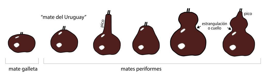 | Keywords: Lagenaria siceraria "mate" o "porongo" morfologías, galleta, periformes, estrangulación o cuello, con pico.svg Lagenaria siceraria mate o porongo diferentes morfologías de frutos utilizados como recipiente para tomar mate Mate galleta mates periformes estrangulación o cuello pico own work User RoRo Cc-zero Lagenaria siceraria Guampa | ||||