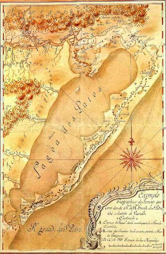 Keywords: LagunaPatos1763.jpg Representação do Rio Grande de São Pedro em 1763 Museu de Topografia da UFRGS http //www ufrgs br/museudetopografia/museu/mapa_lagoadospatos htm 1763 José Custódio de Sá e Faria PD-old-100 Museu da Universidade Federal do Rio Grande do Sul Lagoa dos Patos |