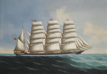 | Keywords: Lai Fong - The four-masted barque ‚Oranasia‘.jpg The four-masted steel barque šOranasia ˜ built in 1892 by Russell Co Port Glasgow for J W Goffey Liverpool between 1892 1907 oil on canvas cm 62 5 88 5 object history credit line accession number 1 http //www arcadja com/auctions/en/lai_fong_of_calcutta/artist/81424/ arcadja com<br/>2 http //www sothebys com/en/auctions/ecatalogue/2009/fine-chinese-ceramics-and-works-of-art-l09711/lot 246 lotnum html Sotheby's London 2009 11 04 L09711 lot 246 with the wrong title The clipper šEastern Monarch ˜ PD-Art-100 Lai Fong Oranasia ship 1892 19th-century sailing ships in paintings Images from Sotheby's 20th-century sailing ships in paintings Paintings not categorised by year |
