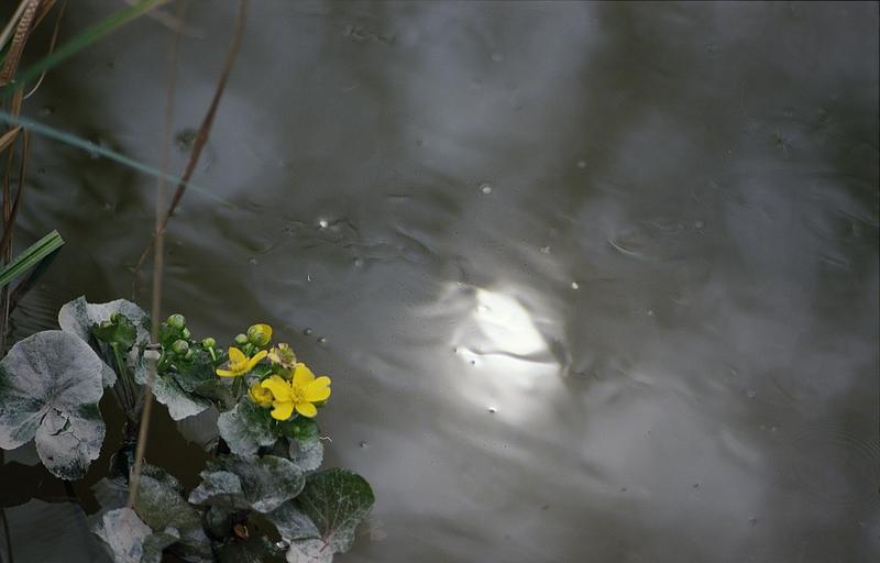 Keywords: vacratot arboretum lake flower yellow gray rain sun reflection drops outdoor Chinon CG-5 Chinon 50mm f/1.4 Kodak Ektar 100 Chinon CG-5 Chinon 50mm f/1.4 Kodak Ektar 100