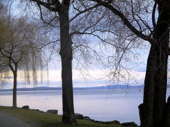 Keywords: lake bank trees abendstimmung color idyllic lake constance romanshorn switzerland