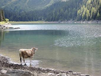 Keywords: lake bergsee cow animal ruminant wild drink