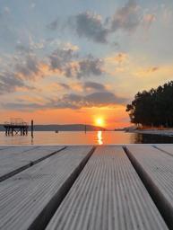 Keywords: lake constance lake sunset sunny sun summer peaceful pier wood cloud clouds orange yellow sky tree quiet romantic überlingen landscape beautiful warm water