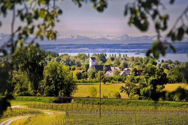 Keywords: lake constance uhldingen mountains alpine lake lake view view panorama summer meadow village idyll idyllic