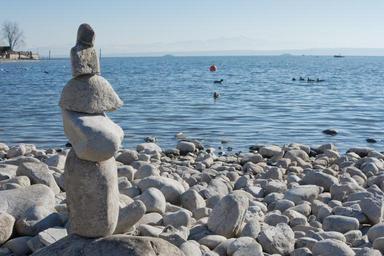 Keywords: lake constance water beach sculpture stones stone hill stone sculpture