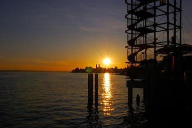 Keywords: lake constance water dusk waters panorama sky sunset mood reflection distant view port