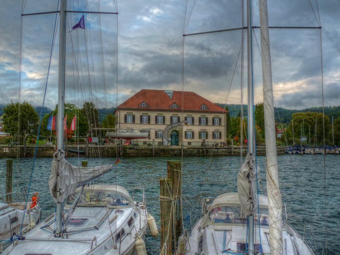 Keywords: lake constance water quiet sky blue beautiful pier evening cloud