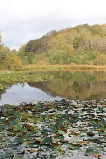 Keywords: lake denmark pond reflections autumn water water lily white water lily