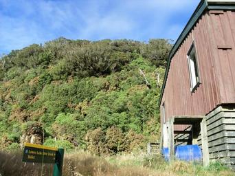 Keywords: Lake Dive Hut 4.jpg The Lake Dive Hut in Egmont NP<br> The blue barrel is a shelter for hunter's dogs 2013-03-13 own Sarang Lake Dive Hut