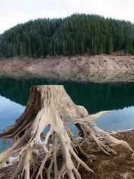 Keywords: lake drought oregon lake detroit nature trees stump