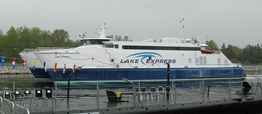 Keywords: Lake Express ferry, Muskegon Lake channel.jpg en Lake Express ferry in the Muskegon Lake channel 2011-05-29 own Bamyers99 43 23056 -86 3328 cc-zero Uploaded with UploadWizard Lake Express ship 2004 Catamaran ferries Muskegon Michigan