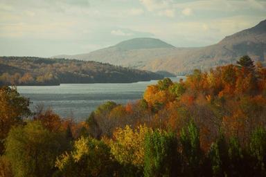 Keywords: lake forest nature landscape outdoors autumn fall grunge water colors trees mountains hills sky