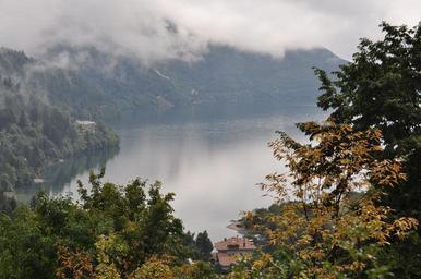 Keywords: lake gray clouds gray sky wet cold mountain sky fog