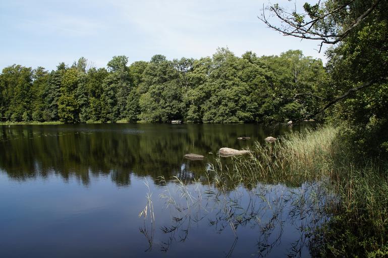 Keywords: lake landscape sweden nature water bank trees reed waters rest blank loneliness summer idyllic