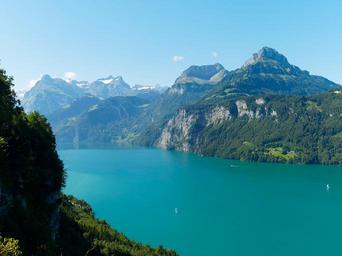 Keywords: lake lucerne switzerland mountains landscape alps meadow