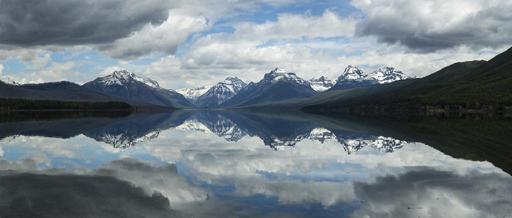 Keywords: lake mcdonald landscape reflection water mountains glacier national park montana usa alpine nature scenic clouds snow peaks panorama