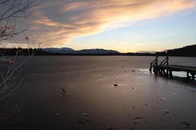 Keywords: lake mood water mirroring web jetty back light abendstimmung