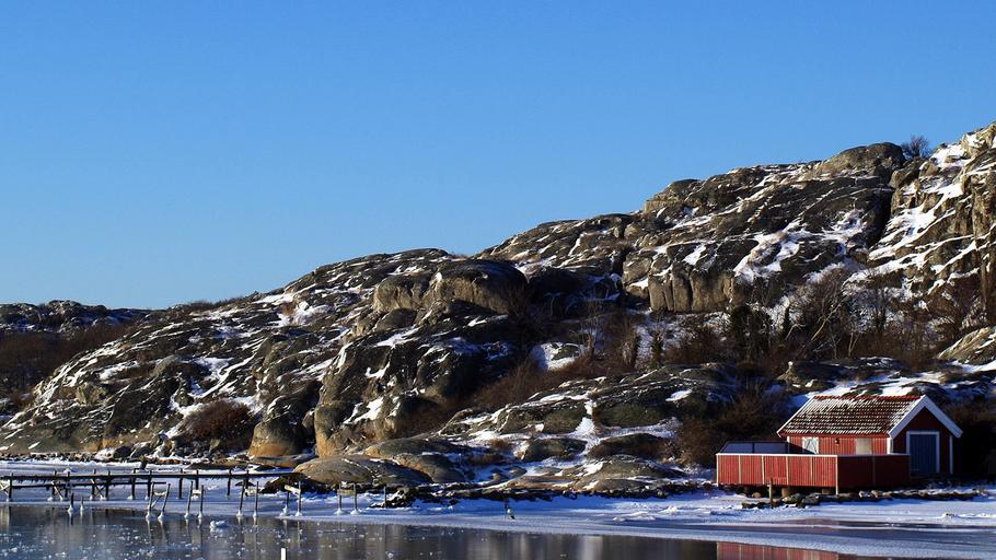 Keywords: lake mountain houses house lakeside snow snowy hill sky