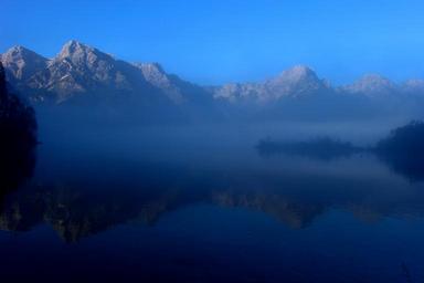 Keywords: lake mountains mirroring morning fog austria nature view haze landscape sky
