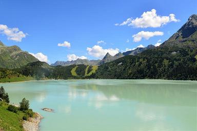 Keywords: lake mountains panorama mirroring kops lake kaunertal tyrol bergsee reservoir