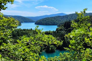 Keywords: lake paradise croatia plitvice water landscape blue nature sky summer travel scenic natural colorful reflection coast waterfall