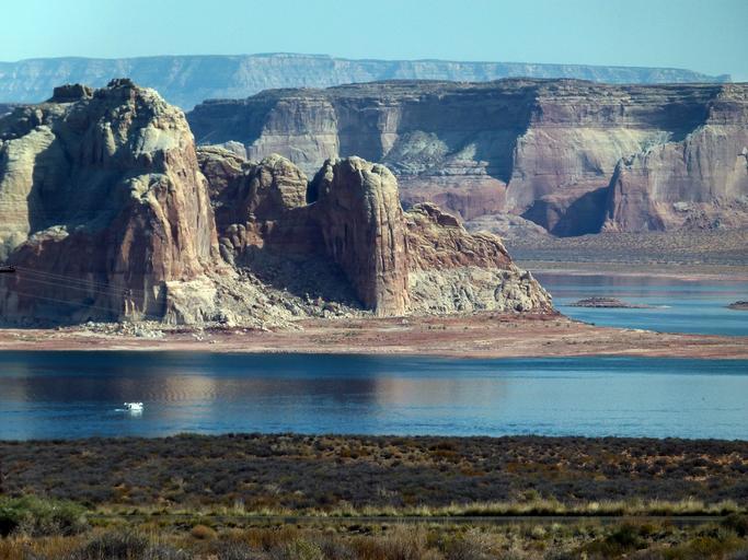 Keywords: lake powell arizona usa tourist attraction outdoor activities water sport boating swimming wind surfing recreation nature landscape red rocks clouds summer scenery natural natural water lake reservoir countryside
