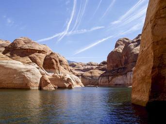 Keywords: lake powell page arizona usa water reservoir landscape outdoor rocks beautiful hot dry scenery nature desert tourist attraction