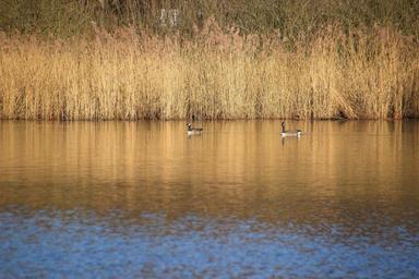 Keywords: lake reed birds bank pond nature mirroring idyll lakeside beautiful waters mood water sun geese wild geese