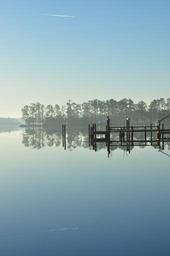 Keywords: lake reflection north carolina river water scenic fog blue sky calm