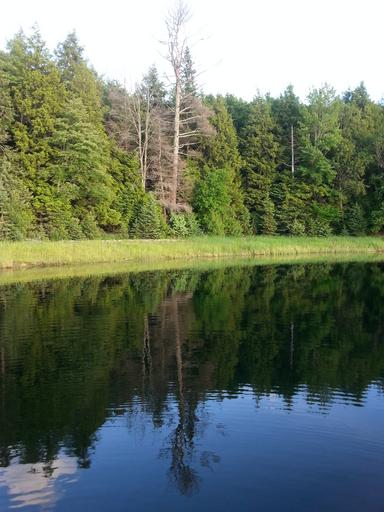 Keywords: lake reflection shore landscape nature scenic beautiful trees dead tree
