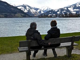 Keywords: lake reflection togetherness water mountains quiet zeller see zell am see tranquil peaceful view
