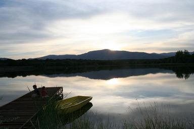 Keywords: lake reservoir sunset barca fishing children girl people friendship brothers game afternoon reflection