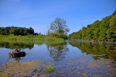 Keywords: lake sky landscape nature water reflection tree blue green scenic scenery summer outdoors tranquil calm sunny scene peaceful natural environment