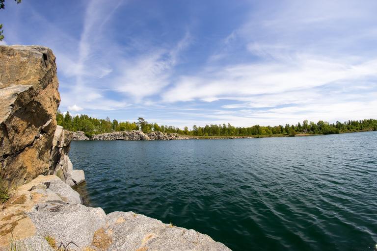 Keywords: lake sky water landscape blue clouds summer mountain and water wave rock cliff
