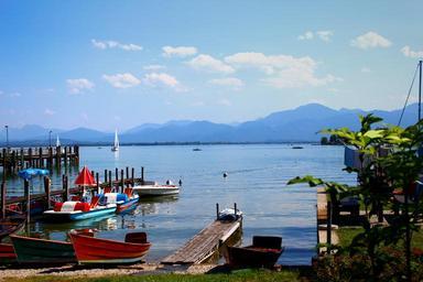 Keywords: lake summer colorful chiemsee water bank holiday boats